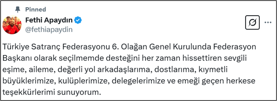 Fethi Apaydın görevden alınmalı, Türkiye Satranç Federasyonuna kayyım atanmalıdır.
