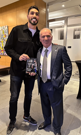 Evren Üçok, Enes Kanter’in ve kitabının lansmanının yapıldığı organizasyona katılmıştır. Ön plandaki resimdir. Bunu da keyifle ve birçok kanaldan duyurmaktadır.
